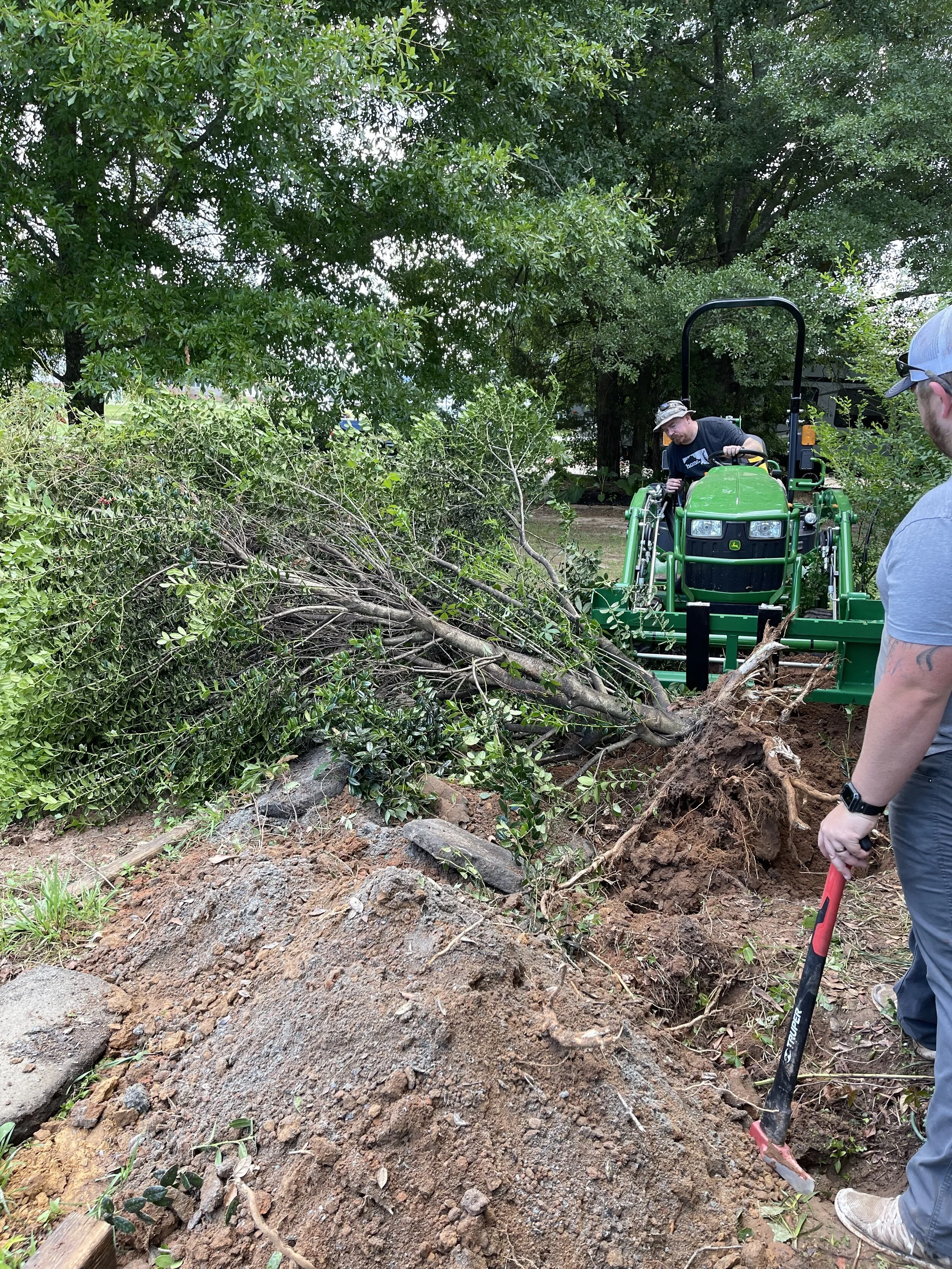 Backhoes are a great tool for digging holes or trenches, removing bushes or small trees, or a lot of other cleanup tasks. With the way Hurricane Helene has ravaged the upstate, a backhoe really comes in handy to scrape dirt out of those huge root balls and lighten them up before removal, or over-digging a hole under a root ball and setting it back in it.