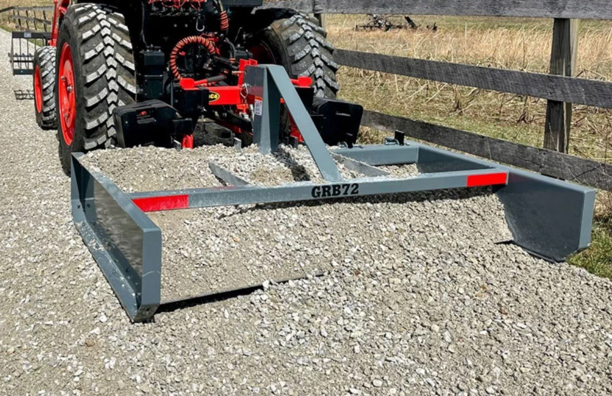 An angle blade or grader is great for gravel driveways, but to get an area leveled, or to skim surface material from an area, box blades work very well. They can often be used in conjunction with a tiller to do more aggressive sculpting to create swales or level very uneven areas.